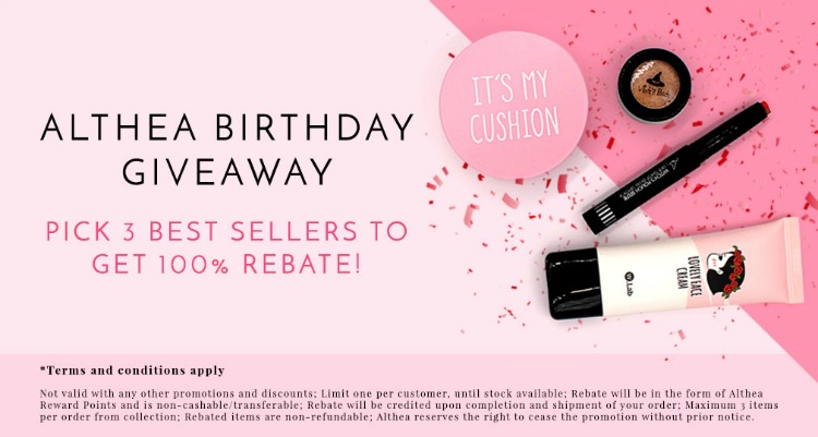 - Got your Althea party kit? Wish us a happy birthday with #altheaturns1 and stand a chance to win amazing prizes such as Macbook Air, Ipad Air 2, iPhone 6S, Galaxy S6 Edge, Canon EOS M10 Selfie Camera, Althea credits and beauty hampers from Althea!